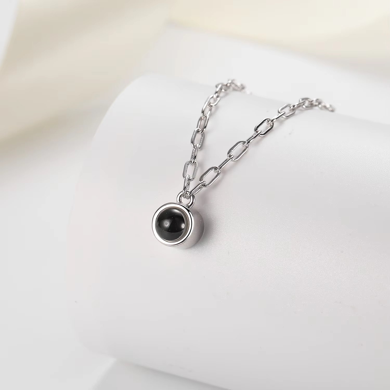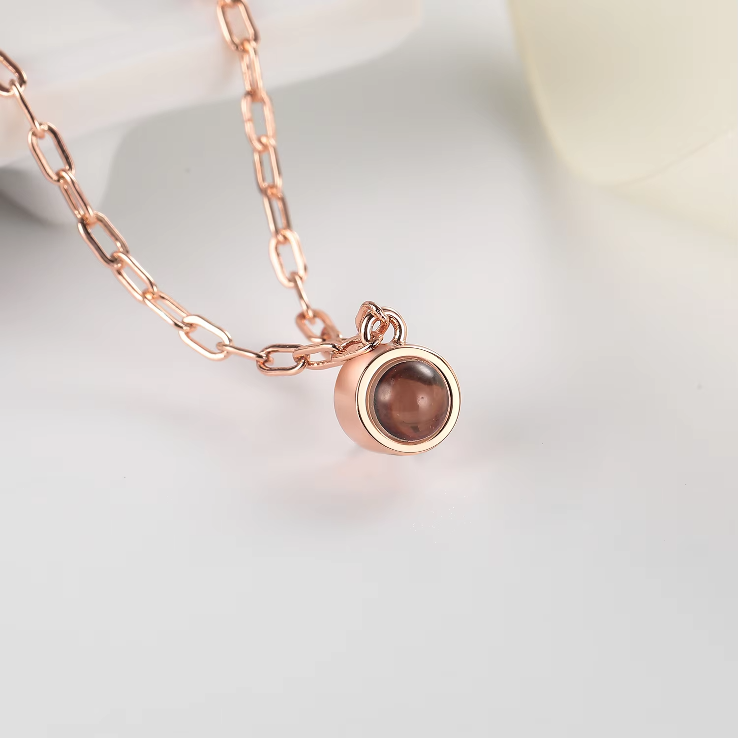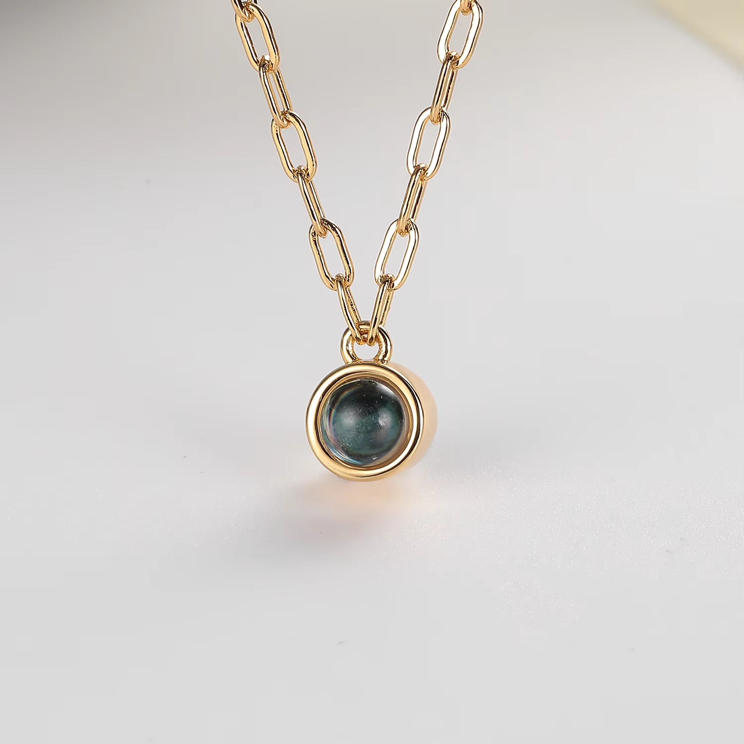 ¡Un collar de cadena de clip con un dije circular personalizado para preservar todo lo que ames en la vida! Cada collar se hace a pedido y ha sido diseñado y elaborado a mano por artesanos expertos.